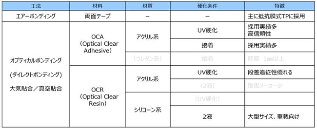 弊社で対応可能な貼合方式(大気貼合・真空貼合)と貼合材料