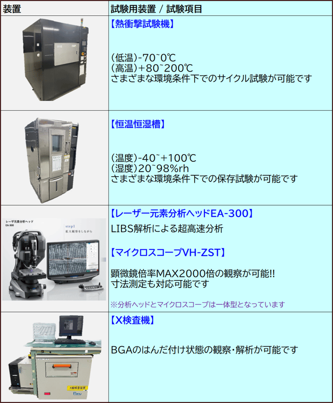 環境試験装置を保有、試験実施による製品の信頼性を確保いたします